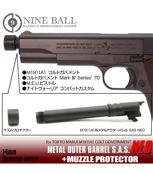 LAYLAX NINEBALL M1911A1用メタルアウターバレルSAS サイレンサーアタッチメントNEO+マズルプロテクター